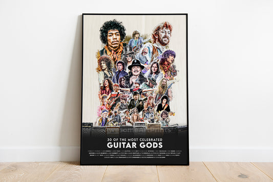 Guitar Gods Poster Print, Digital Illustration | 30 Guitar Legends