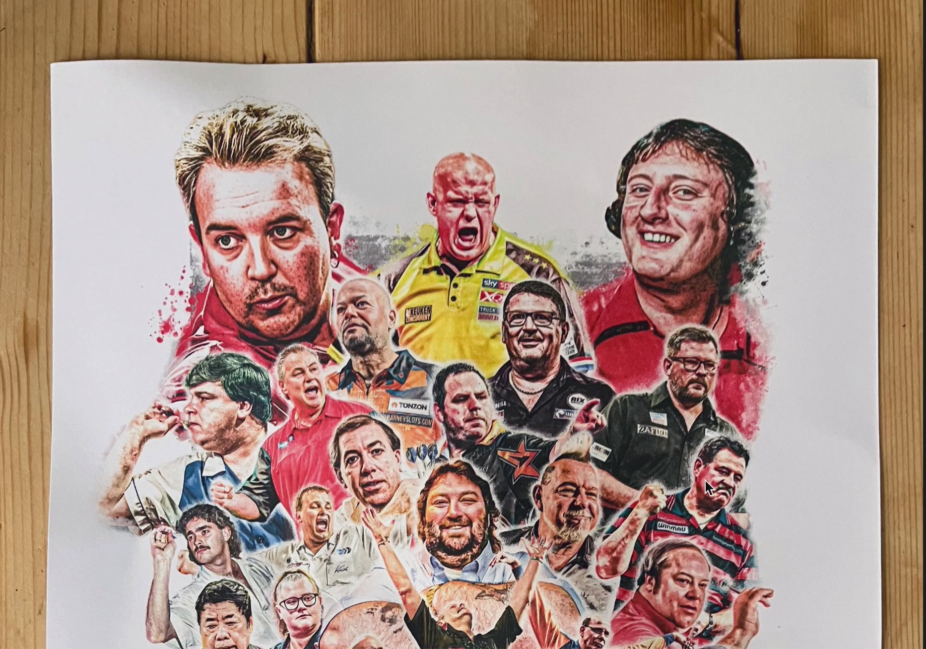 From left to right: 1.Phil Taylor 2.MICHAEL VAN GERWEN 3.Eric Bristow 4.Jockey Wilson 5.John Part 6.Raymond van Barneveld 7.Adrian Lewis 8.Gary Anderson 9.James Wade 10.Steve Beaton 11.Keith Deller 12.John Lowe 13.Andy Fordham 14.Peter Wright 15.Dennis Priestley 16.Paul Lim 17.Beau Greaves 18. Kyle Anderson 19.Bob Anderson 20.Co Stompe 21.Leighton Rees 22.Gerwyn Price 23.Simon Whitlock 24.Terry Jenkins 25.Peter Manley 26.Cliff Lazarenko 27.Alan Evans 28.Luke Humphries 29.Lisa Ashton 30.Jonny Clayton 31.Wayne Mardle 32.Russ Bray 33.Sid Waddell 34.Bobby George 35.Glen Gurrant 36.Colin Lloyd 37.Martin Adams 38.Maureen Flowers 39.Fallon Sherock 40.Rod Harrington 41.Ronnie Baxter 42.Larry Butler 43.Richie Burnett 44.Rob Cross 45.Michael Smith 46.Brendon Dolan 47.Luke Littler 48.Anastasia Dobromyslova 49.Trina Gulliver 50.Deta Hedman